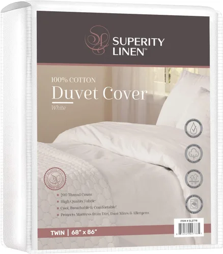 Funda de edredón de tamaño individual: esta funda de edredón de tamaño individual mide 68 pulgadas de ancho por 86 pulgadas de largo con una apertura de 42 pulgadas. CIERRE DE BOTÓN SEGURO: La funda de edredón de tamaño twin viene con 6 botones que te permiten asegurar el edredón en su lugar. El diseño se hizo fácil para que el cliente pueda coser esquinas adicionales en caso de que lo desee, pero no es necesario SENSACIÓN FRESCA Y LIGERA PARA COMODIDAD EN TODAS LAS ESTACIONES: Disfruta de un tejido ligero pero duradero que es fresco en verano y acogedor en invierno, proporcionando una suavidad tipo hotel que realza el volumen de tu edredón sin añadir peso. ALGODÓN 100% PREMIUM PARA COMODIDAD TOTAL: Experimenta la suavidad natural y transpirabilidad del algodón puro que se siente suave en tu piel, se mantiene fresco y crujiente durante toda la noche, y se vuelve aún más suave con cada lavado—ideal para pieles sensibles y personas que duermen con calor. 200 hilos: esta funda de edredón superior está tejida con 200 hilos para una larga durabilidad sin sacrificar la comodidad FÁCIL DE LAVAR: Esta funda de edredón es fácil de lavar. Solo un simple enjuague y saldrá luciendo nueva. Utilizado en muchos hoteles: Superity Linen es una marca que muchos hoteles de alta gama utilizan para sus necesidades de ropa de cama.