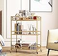 Carritos de Bar Cuadrados de Oro con 3 Niveles de Almacenamiento con Estantes de Vidrio para el Hogar, Carritos de Servicio con Ruedas para Cocina,