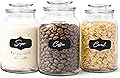 WHOLE HOUSEWARES Juego de 3 recipientes de vidrio con tapas herméticas, tarros de almacenamiento de vidrio para dulces, galletas, harina, azúcar,