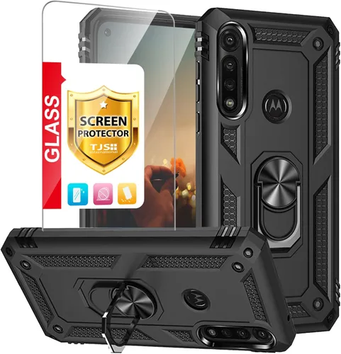 TJS Funda compatible con Motorola Moto G Power (2020), con protector de pantalla de vidrio templado, anillo de metal, soporte magnético, soporte