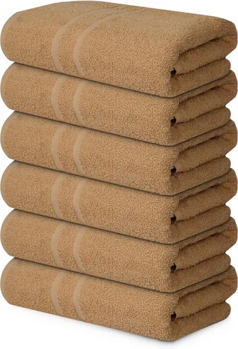 Toallas de baño básicas medianas de 24 x 48 pulgadas, paquete de 6, color beige, suaves y absorbentes, toallas de algodón multiusos para baño, spa,