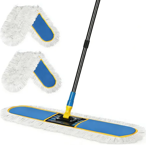 Trapeador de polvo comercial de 36 pulgadas para limpieza de suelos con 2 almohadillas de algodón, plumero industrial de gran resistencia, mopas húmedas y secas para suelos de madera dura, hormigón, mármol, laminado, azulejos, garaje, azul