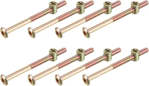 Grado de resistencia: 4.8; Color principal: tono bronce; Diámetro de rosca: M6; Longitud debajo de la cabeza: 3.346 in; Longitud de rosca: 1.890 in / 1.89 pulgadas; Tamaño de la tuerca: 0.374 x 0.512 in / 0.37 pulgadas x 0.52 pulgadas (profundidad máxima). * L); ajuste hexagonal Tamaño de la llave: 0.157 in Ventaja: hardware sólido y bien construido para ensamblar la mayoría de camas, mesas, sillas o bancos de trabajo, etc. Aplicación: Para unir la mayoría de las maderas, tableros, encimeras de cocina, armarios, armarios y una variedad de otros proyectos de bricolaje. Material: Hecho de acero al carbono, fabricado por forja en frío, con estructura de rosca precisa y alta resistencia, la superficie adopta el proceso de fortalecimiento, recubrimiento electro-galvanizado, resistencia a la corrosión y aspecto hermoso. Instalación: 1. Haga un agujero en la tabla de madera de acuerdo con el diámetro exterior de la tuerca e instale la tuerca. 2. Haga un agujero para otra tabla de madera, alinee con el orificio de instalación de la tuerca, inserte la tuerca de bloqueo del tornillo y la instalación está completa.
