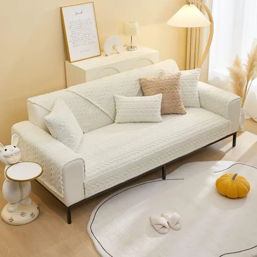 vctops Funda de sofá geométrica bohemia de felpa suave para invierno, color liso, lavable, protector de muebles para perros, gatos y mascotas, 1