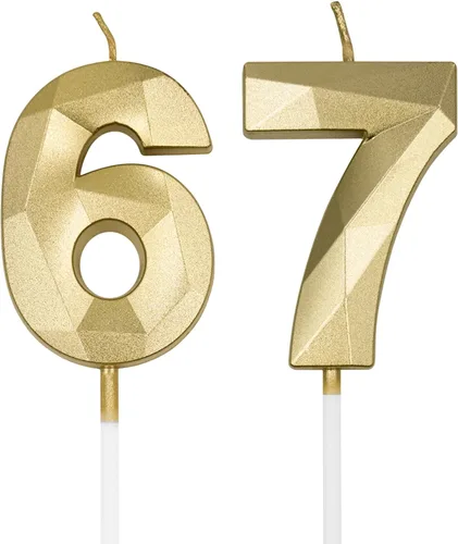 Pregunta sugerida sobre Velas de cumpleaños de 67 y 76 para tartas, número dorado 67 76 3D con forma de diamante, decoración de cumpleaños, suministros de fiesta ¿Este producto sí me sirve para lo que necesito?