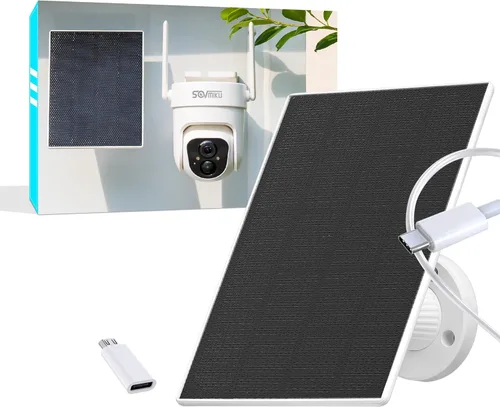 Carga ultraeficiente solar para seguridad 24/7 El panel solar de 5V de alta salida con chip inteligente de seguimiento de luz maximiza la exposición al sol, proporcionando energía sin parar a las cámaras de seguridad para exteriores. El puerto tipo C integrado + el adaptador Micro-USB incluido garantiza la compatibilidad universal con el 99% de las cámaras, incluso en condiciones de poca luz o nublado. Montura ajustable de 360° para un posicionamiento perfecto Incluye una montura de ABS resistente con ajustes de inclinación horizontal (360°) y vertical (180°) de rango completo. Instala de forma segura en paredes, vallas o estacas en el suelo, sin necesidad de herramientas. Optimice los ángulos diariamente para captar la luz solar máxima para una carga más rápida. Diseño resistente y a prueba de agua IP65: la carcasa impermeable + el marco de plástico sobrevive al calor extremo (32 °F a 113 °F), tormentas y exposición a los rayos UV. El circuito de triple protección evita sobrecarga, cortocircuito y corriente inversa. Construido para durar más allá de las duras temporadas al aire libre. Kit completo, listo en 5 minutos Todo incluido: panel solar, montaje de 360°, adaptador tipo C a Micro-USB, cable USB resistente a la intemperie de 9.8 pies, tornillos. No se requiere cableado ni electricista: ¡simplemente enchufa en tu cámara y listo! Garantía sin riesgos de 180 días respaldada por una promesa de reemplazo de 6 meses por defectos. Soporte experto gratuito 24/7 para solucionar problemas de configuración solar. Deshazte de las baterías agotadas y los cables desordenados: actualízate a energía ecológica y sin preocupaciones hoy
