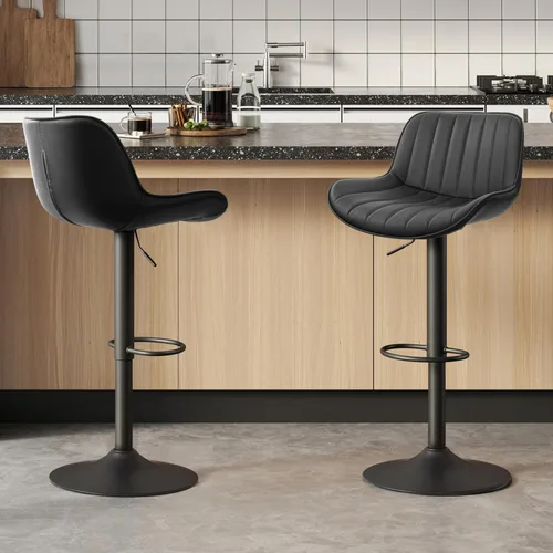 Elegantismo moderno: Adopta un toque moderno en un clásico de cocina con el Barstool. Con una elegante base de acero con recubrimiento en polvo negro, está adornado con suave tapicería de piel sintética y elegantes costuras en canal, integrándose perfectamente en cualquier cafetería, bar, pub o área de comedor del hogar. Alturas ajustables: personalice el taburete para adaptarse a sus necesidades con su función de altura ajustable. Desde la altura del mostrador hasta la altura de la barra, ajústalo sin esfuerzo a encimeras de isla de cocina, barras de desayuno, bares caseros, escritorios de pie, mesas de restaurante, salones y más utilizando el práctico asa debajo del asiento. Giro suave: experimenta una rotación de 360 grados con facilidad. Los taburetes giratorios de bar con respaldo permiten un movimiento suave y silencioso, lo que te permite mantenerte involucrado en conversaciones mientras saboreas tu bebida o comida favorita. Resistente y estable: disfruta de una estabilidad y un apoyo superiores con la base firme de la silla de bar. La base cuenta con un generoso diámetro de 16.14 pulgadas, asegurando robustez. Está cuidadosamente diseñado con protectores de suelo antideslizantes, evitando arañazos y asegurando que tus suelos permanezcan intactos. Estilo y comodidad combinados: Disfruta del estilo y la comodidad mientras te sientas en el amplio asiento y el respaldo ligeramente inclinado. El diseño ergonómico se adapta a tu cuerpo y ofrece amortiguación adicional con relleno de espuma, perfecto para disfrutar de comidas rápidas entre semana. El reposapiés integrado añade un toque contemporáneo mientras apoya tus pies.