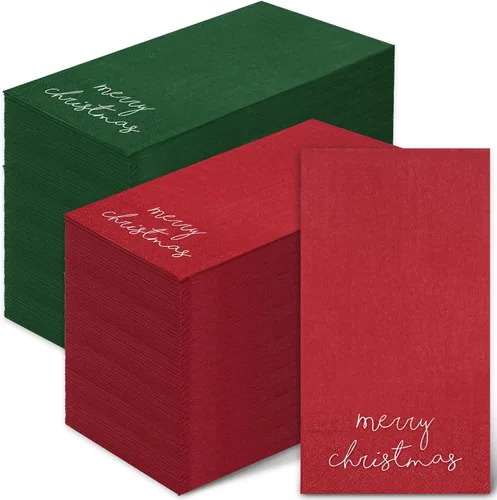 El paquete contiene: el paquete viene con 80 servilletas de Navidad para invitados en 2 colores, con 40 piezas de cada color, cantidades suficientes que son suficientes para satisfacer tus diversas necesidades para fiestas y cenas. Diseño de tema navideño - De color rojo y verde con palabras de bendición [Feliz Navidad] impresas, nuestra servilleta para invitados te permite sumergirte en la rica atmósfera festiva de Navidad. Información sobre el tamaño: las servilletas miden aproximadamente 4.3 x 7.8 pulgadas cuando están plegadas, lo que es adecuado para las mesas, para decorar tus mesas de fiesta y ayudarte a liberar de la carga de limpieza al mismo tiempo. Material de calidad: nuestras servilletas son suaves, gruesas, resistentes y con buena absorción, pueden mantener todos tus platos y mesas limpios mientras son completamente seguras y respetuosas con el medio ambiente. Ampliamente aplicable - Perfecto para vacaciones de invierno, Navidad, Año Nuevo, fiestas de princesas, fiestas de cumpleaños y otras ocasiones, etc. Ideal para decoración y limpieza de mesas.